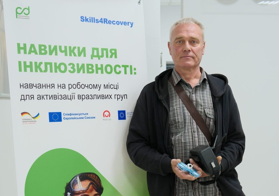 After leaving military service, Serhii completed vocational training as a drone operator under Skills4Recovery and began preparing for work in the agricultural technology sector.